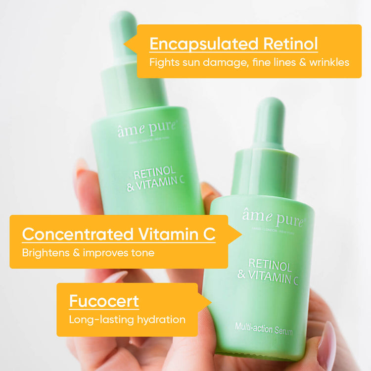 This lightweight serum combines plant-based Retinol and concentrated Vitamin C, encapsulated in phospholipids to penetrate deep into skin for greater potency, without any harsh irritation.