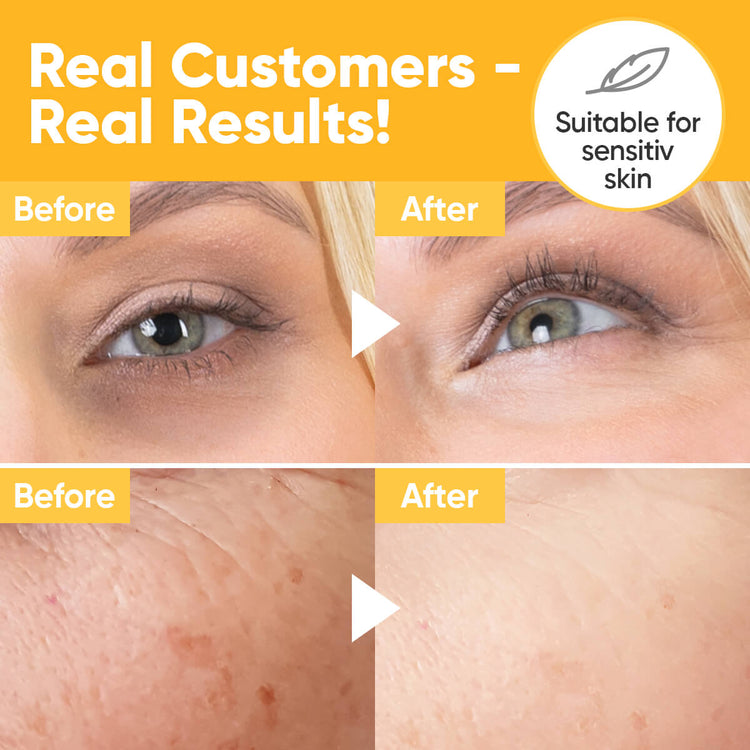 All working together to dramatically brighten uneven skin, while improving the appearance of dark spots, dark circles, eye bags, fine lines, and wrinkles.